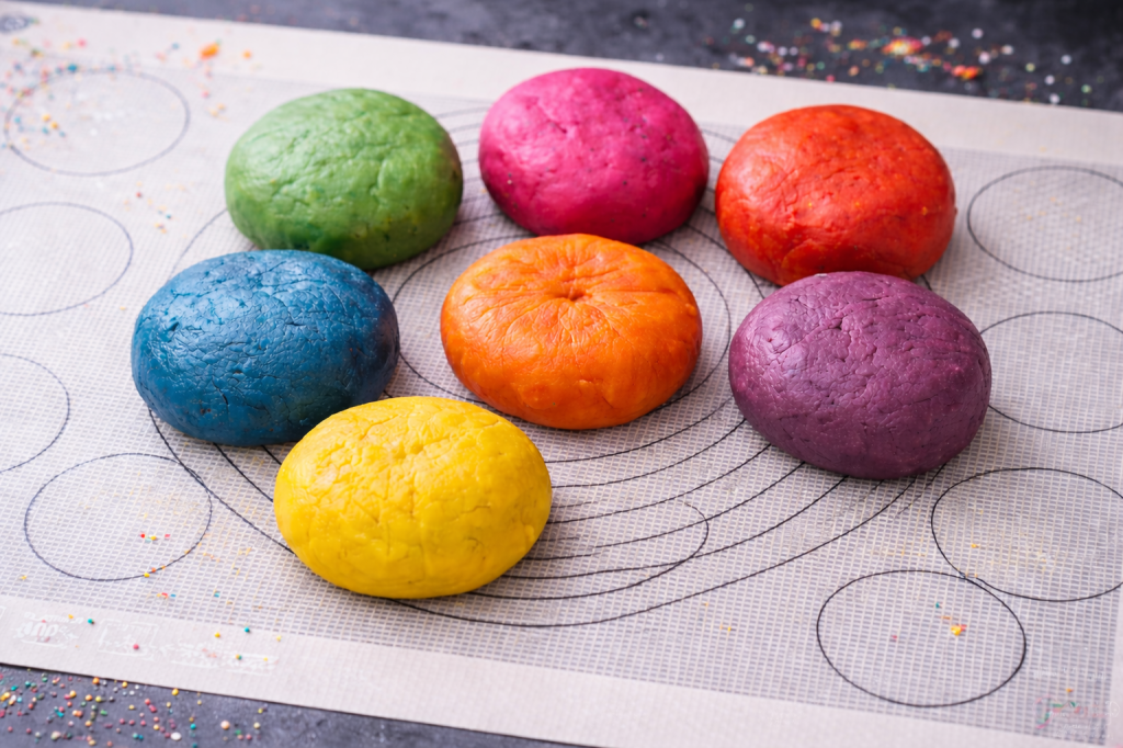 - Jede Portion mit Lebensmittelfarbe einfärben