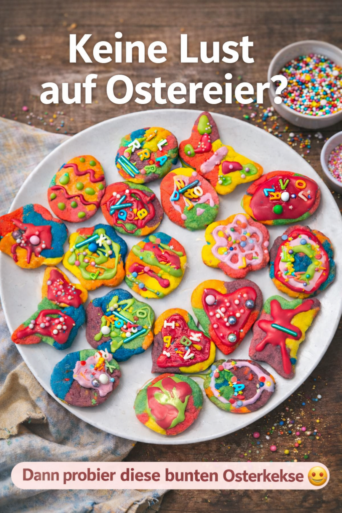 👉 keine klassischen Ostereier, sondern bunte, fröhliche Osterplätzchen! 🌈🐣