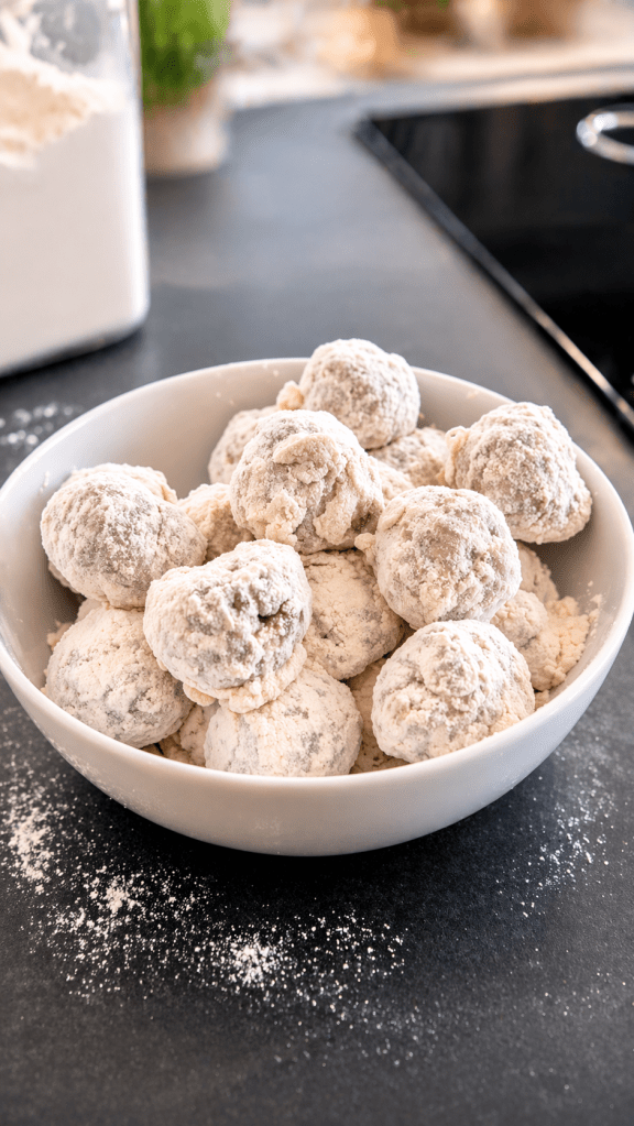 - Gefrorene Hackbällchen kurz in kaltes Wasser tauchen